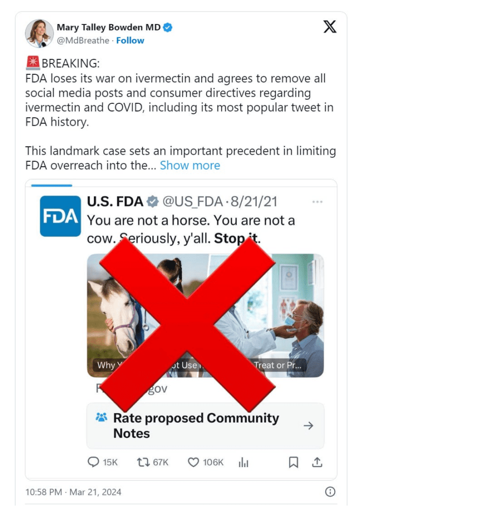 FDA Settles Lawsuit over Ivermectin Social Media Posts